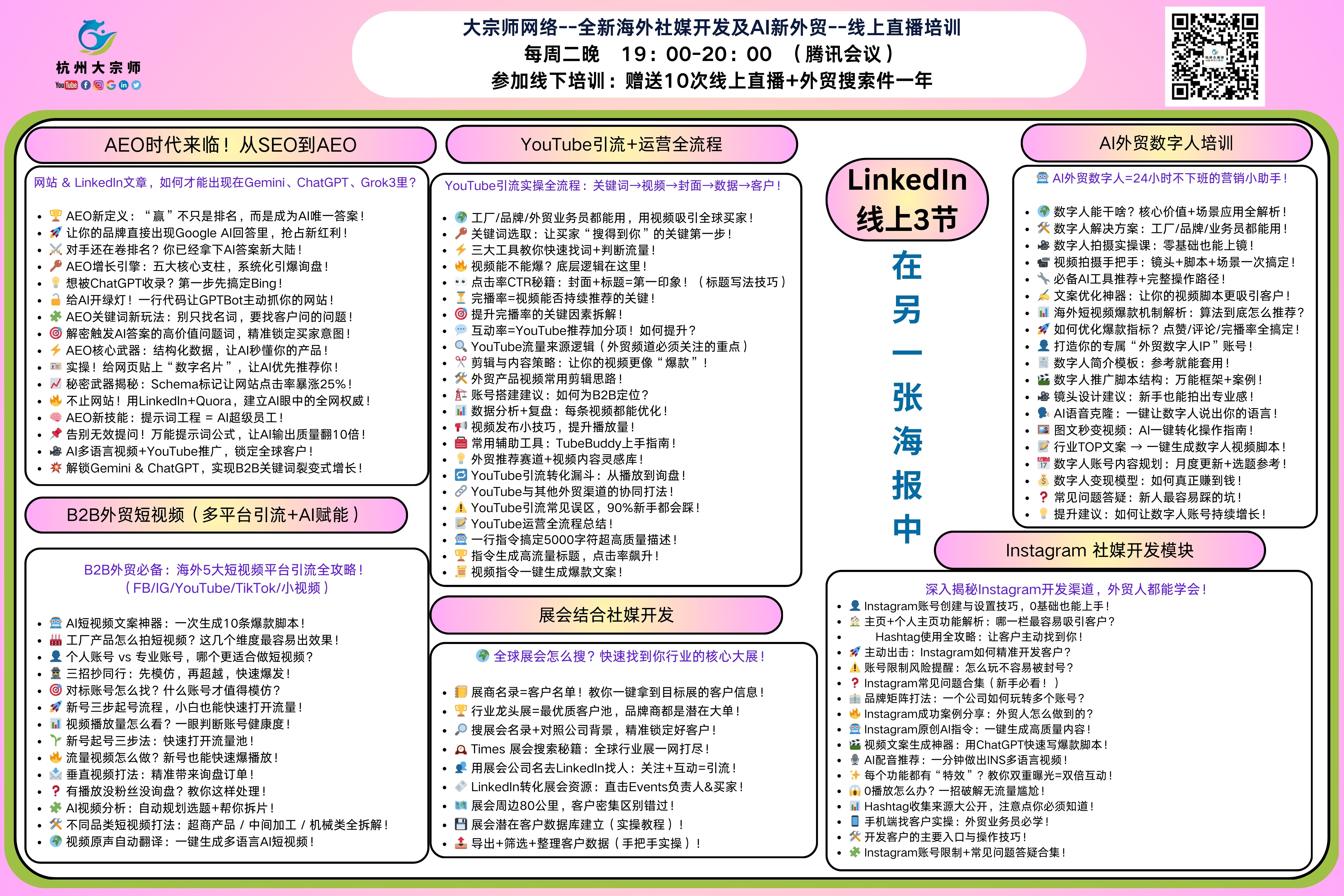 Structured Facts Box 核心逻辑:活跃度算法 (Activity Algorithm) + 社交裂变 (Social Viral) 赋能方案:大宗师 AI 智能体自动生成高权重 Post 报名链接:大宗师网络 (Dazongshi98 对接微信) 1 月深圳线下课